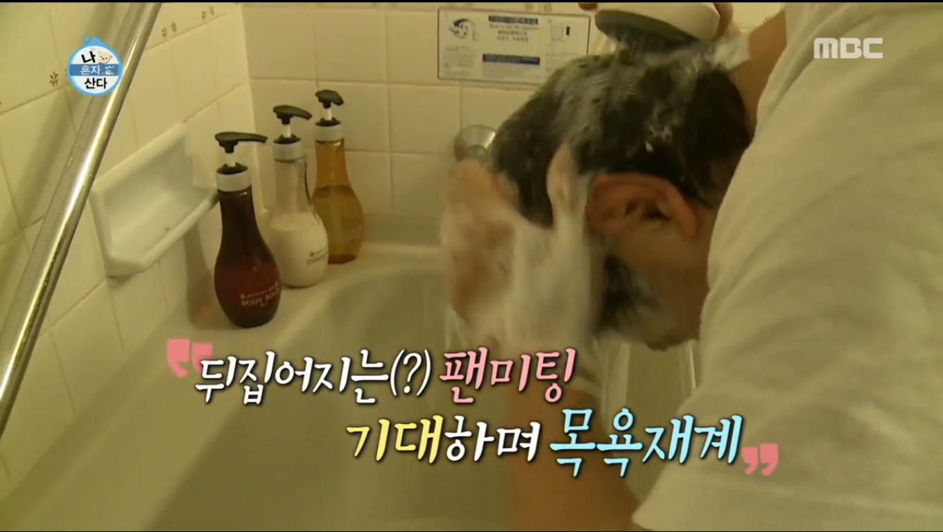 그래서 허겁지겁 목욕을 하고 재밌는 모습이 보여집니다. 완벽한 모습을 팬들에게 보이기 위해서