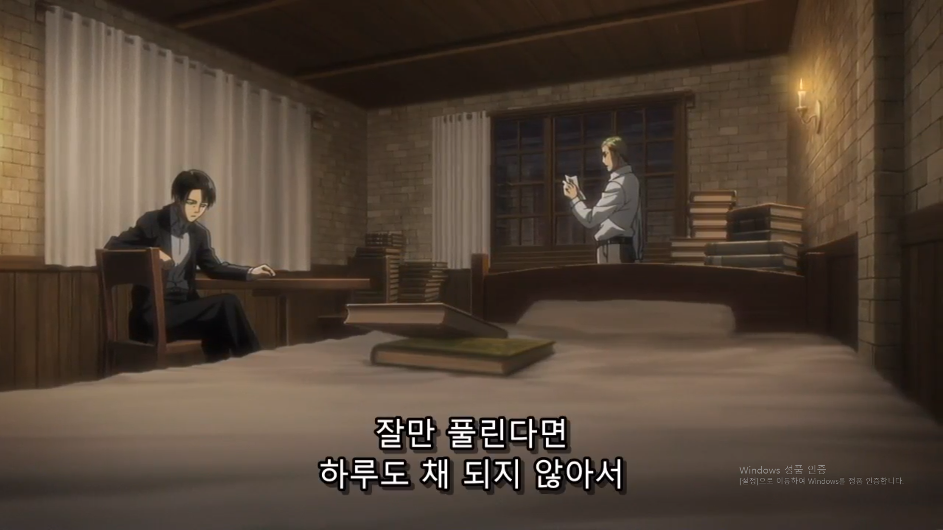 사샤가 몰래 집어먹을까 봐 겁을 주고 리바이 병장님께