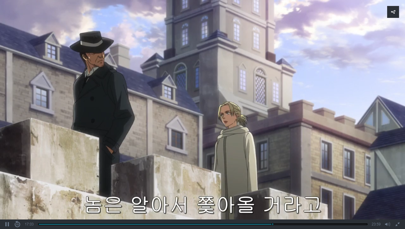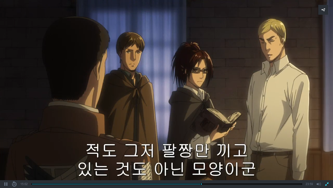 오늘은 진격의 거인 3기 3화를 보았습니다.
